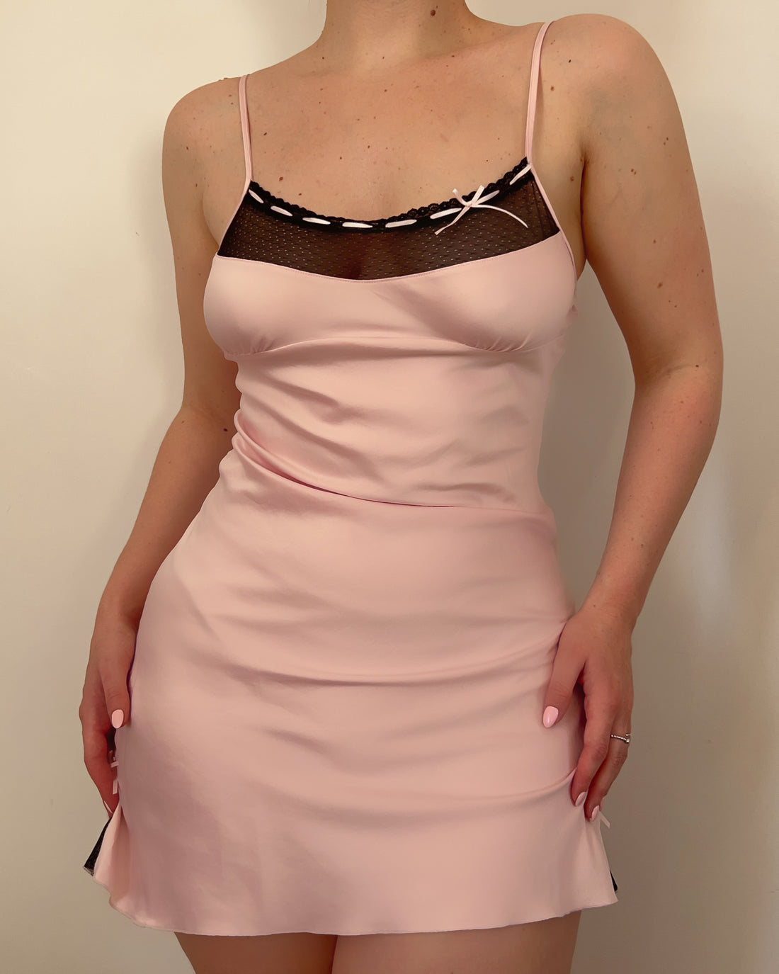 Pink Satin Mini Dress (S/M)