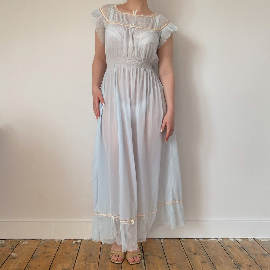 Size: M/LColor: BlueCondition: Perfect vintage conditionMeasurements: Armpit to armpit: 45cm / 17.7 inches Length: 140cm / 55.1 inches...