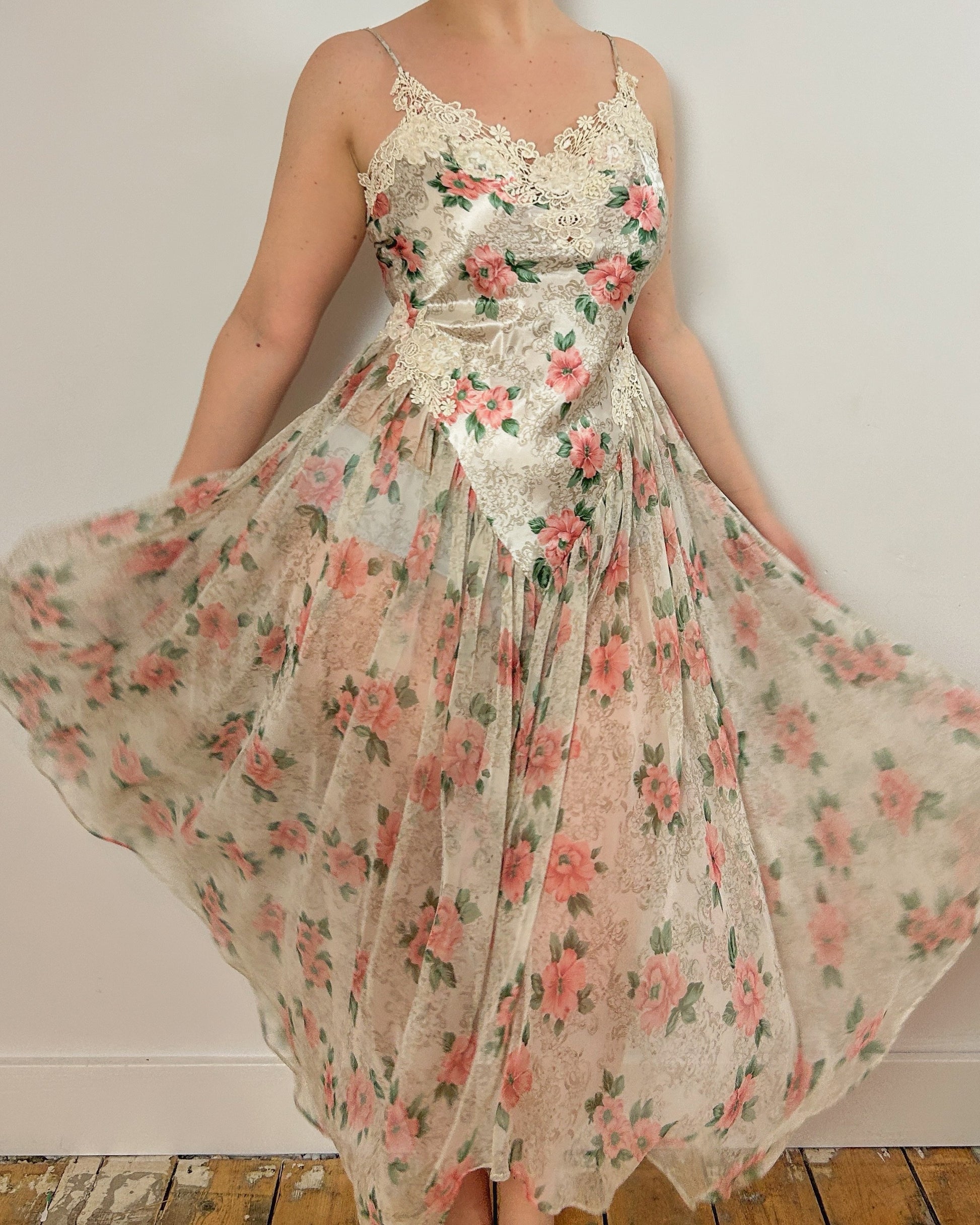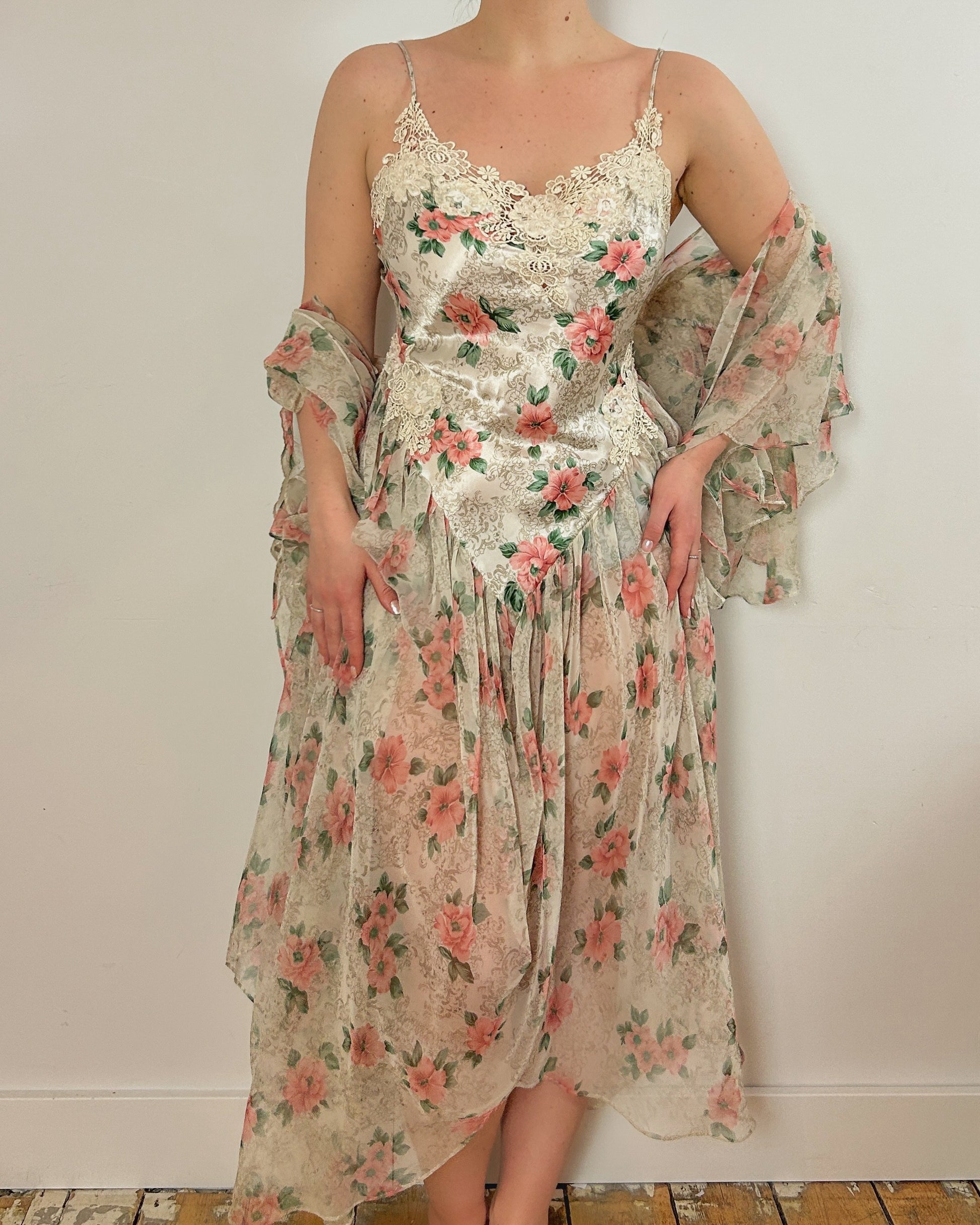 Dream Floral Satin Dress Set (M)