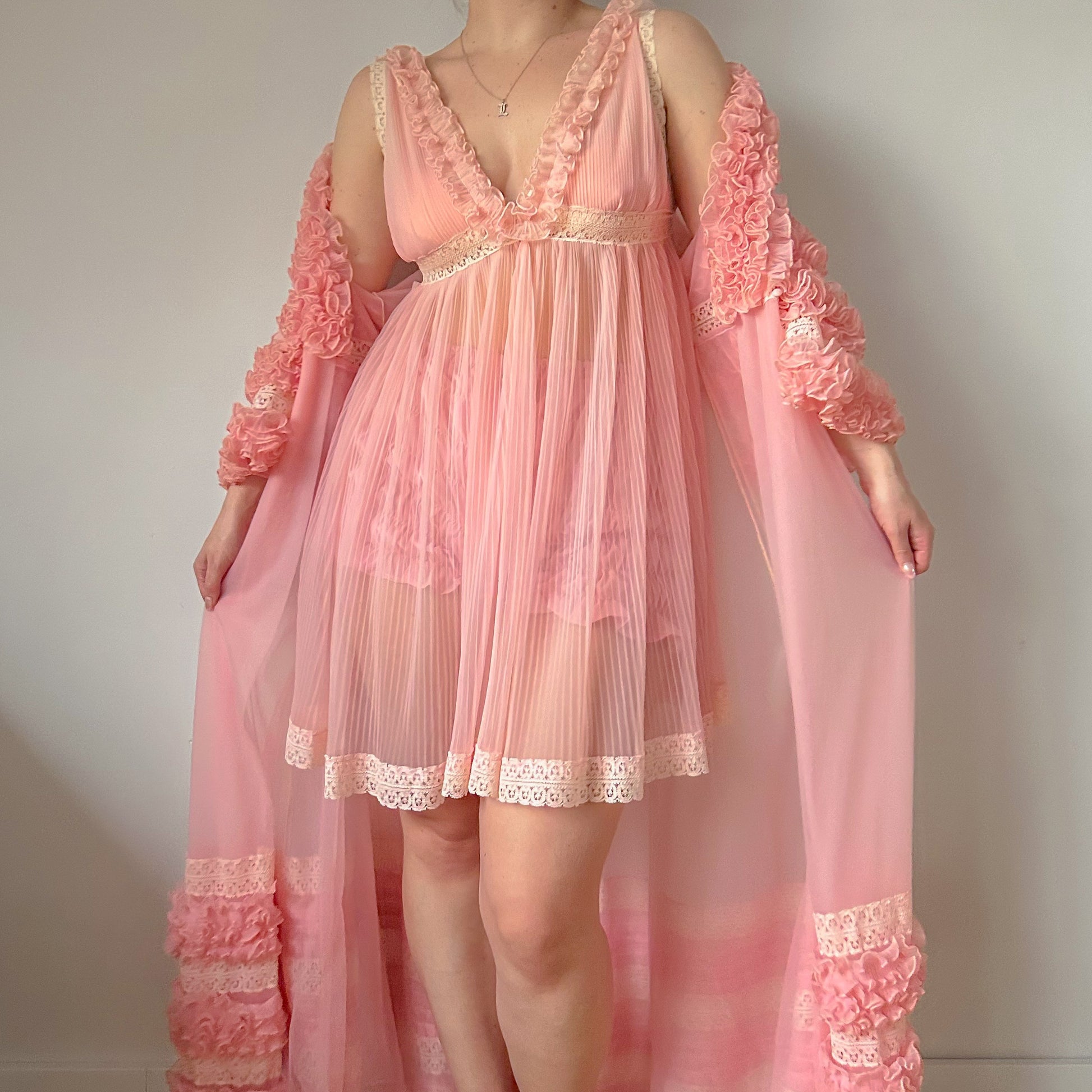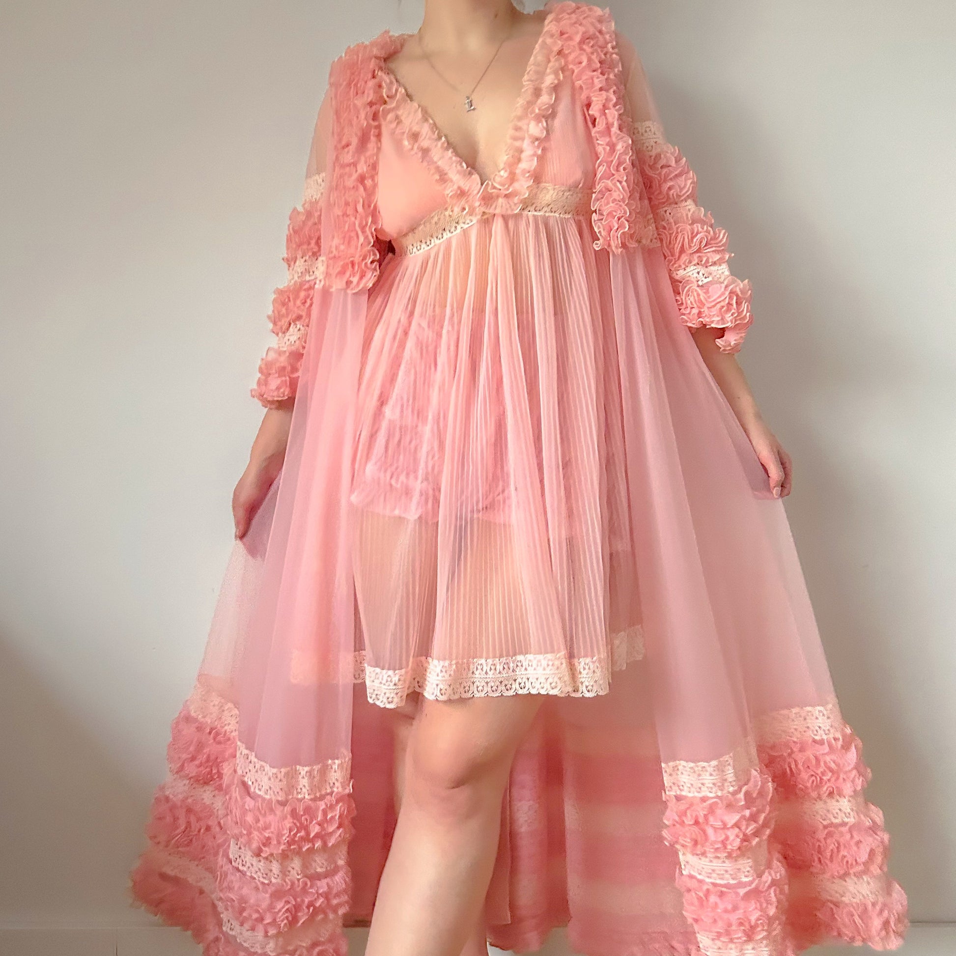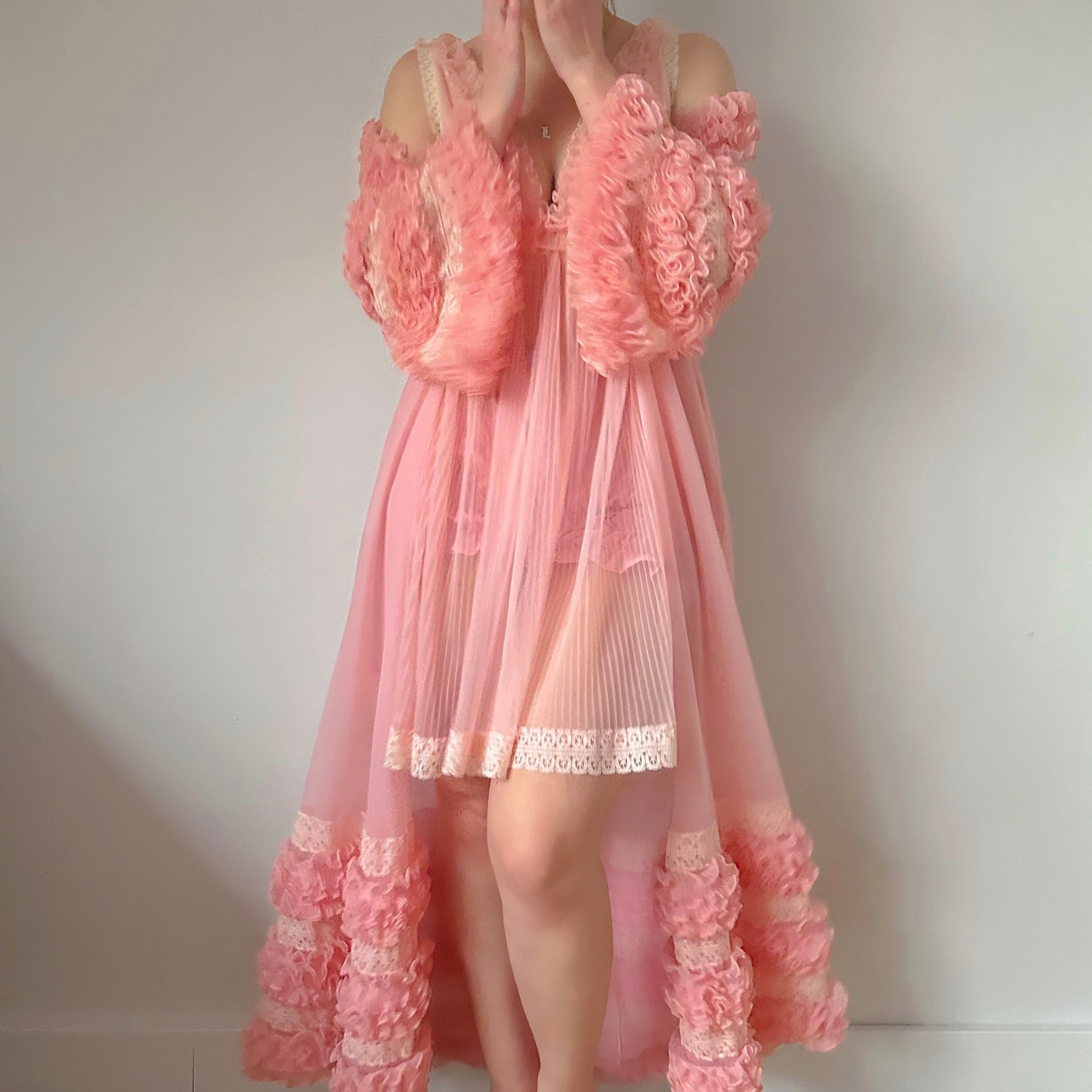 Thank goodness for this beautiful robe and dress set, feel good and graceful.