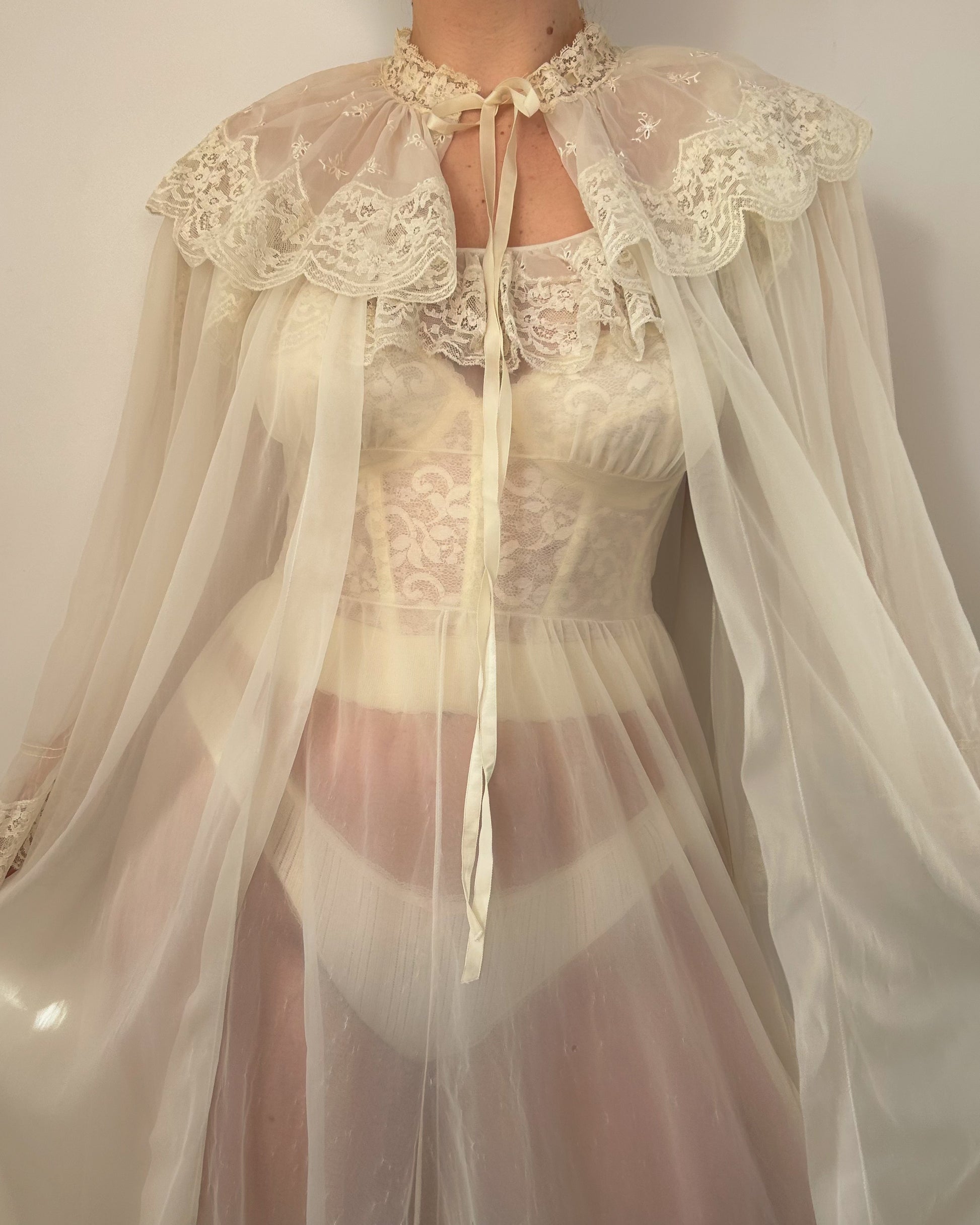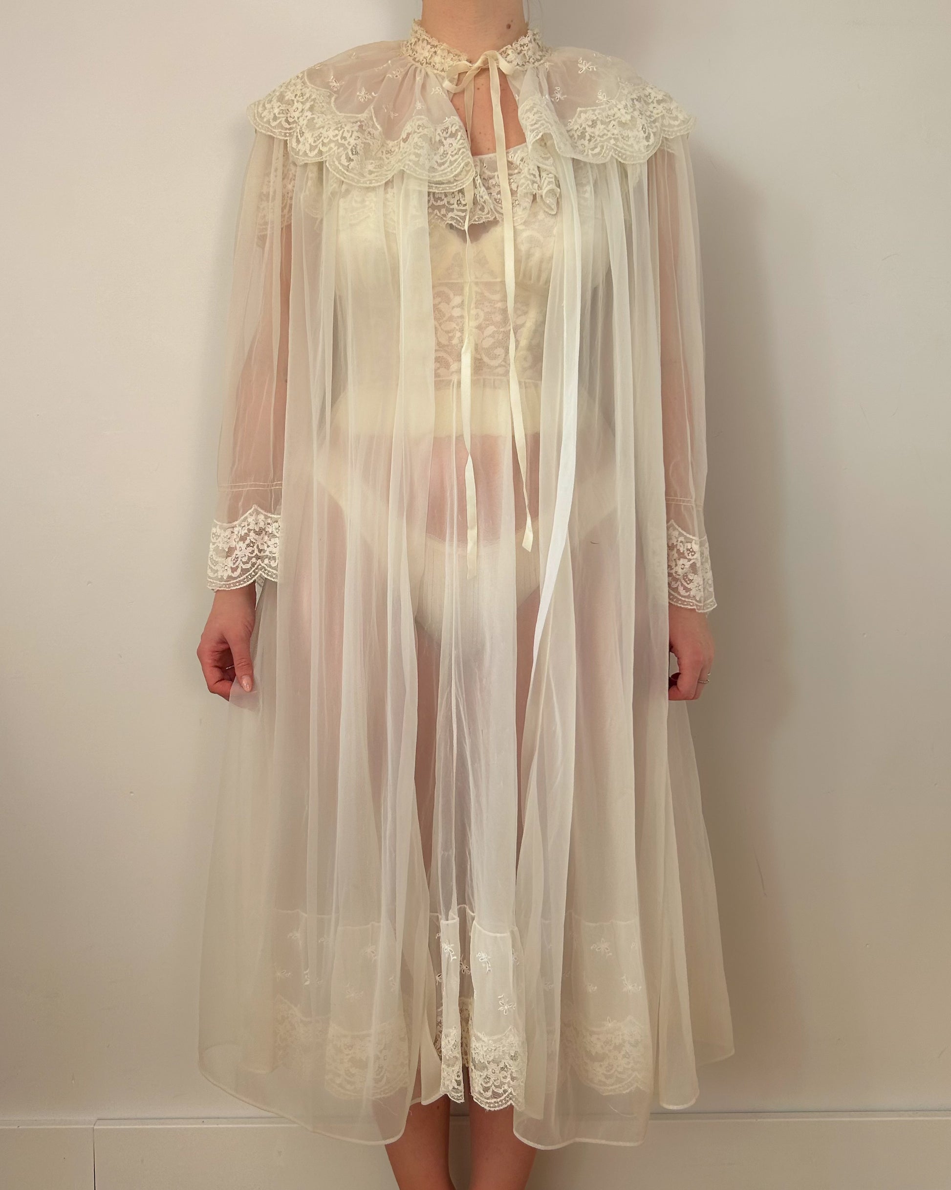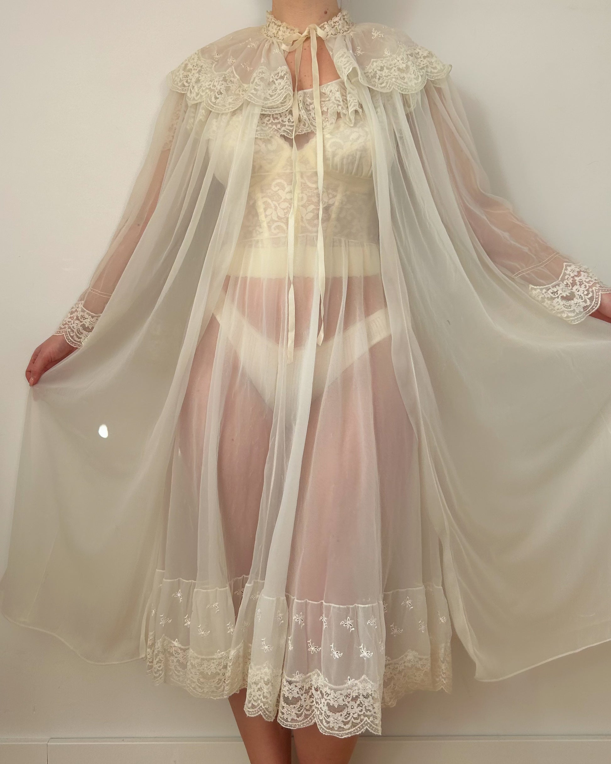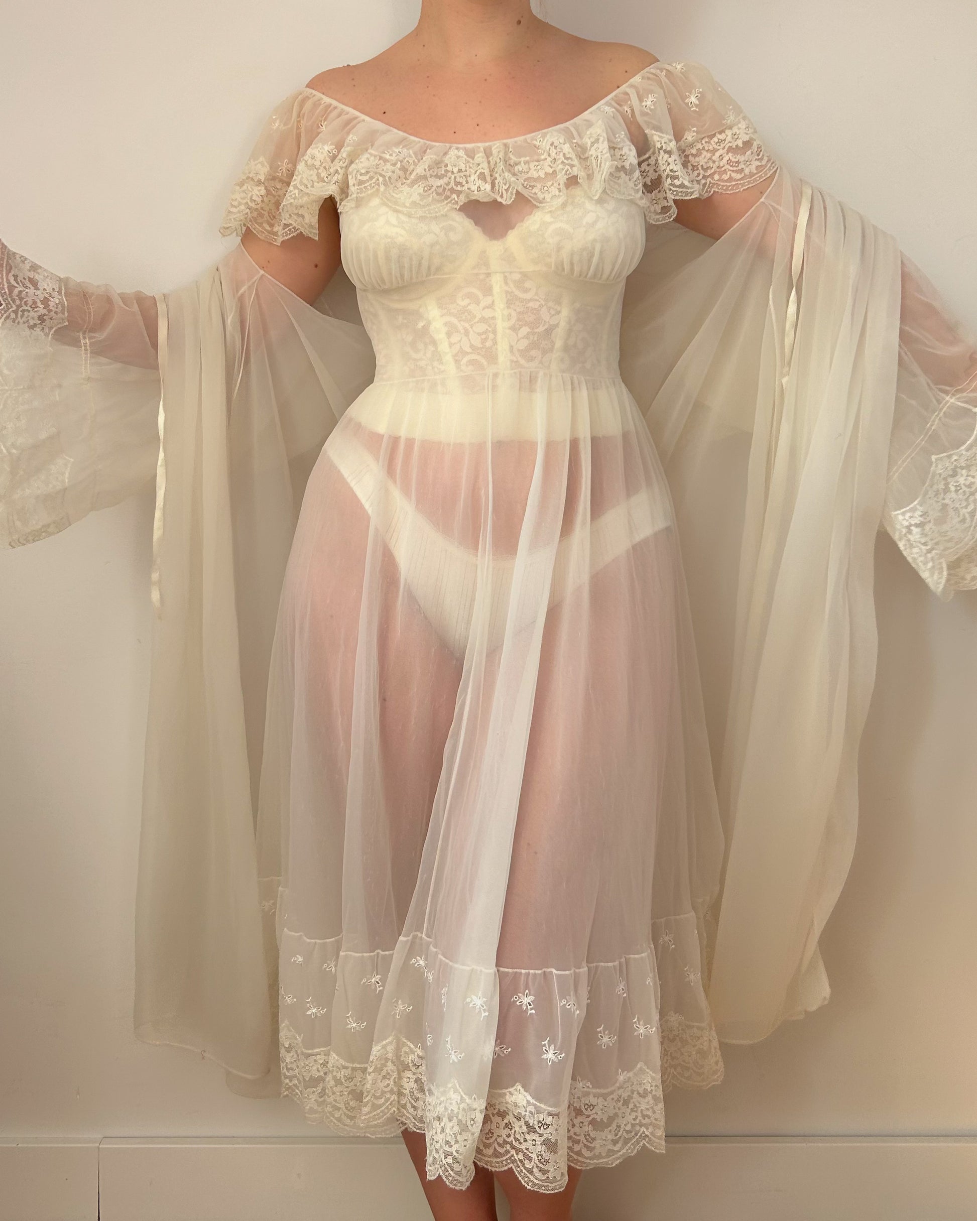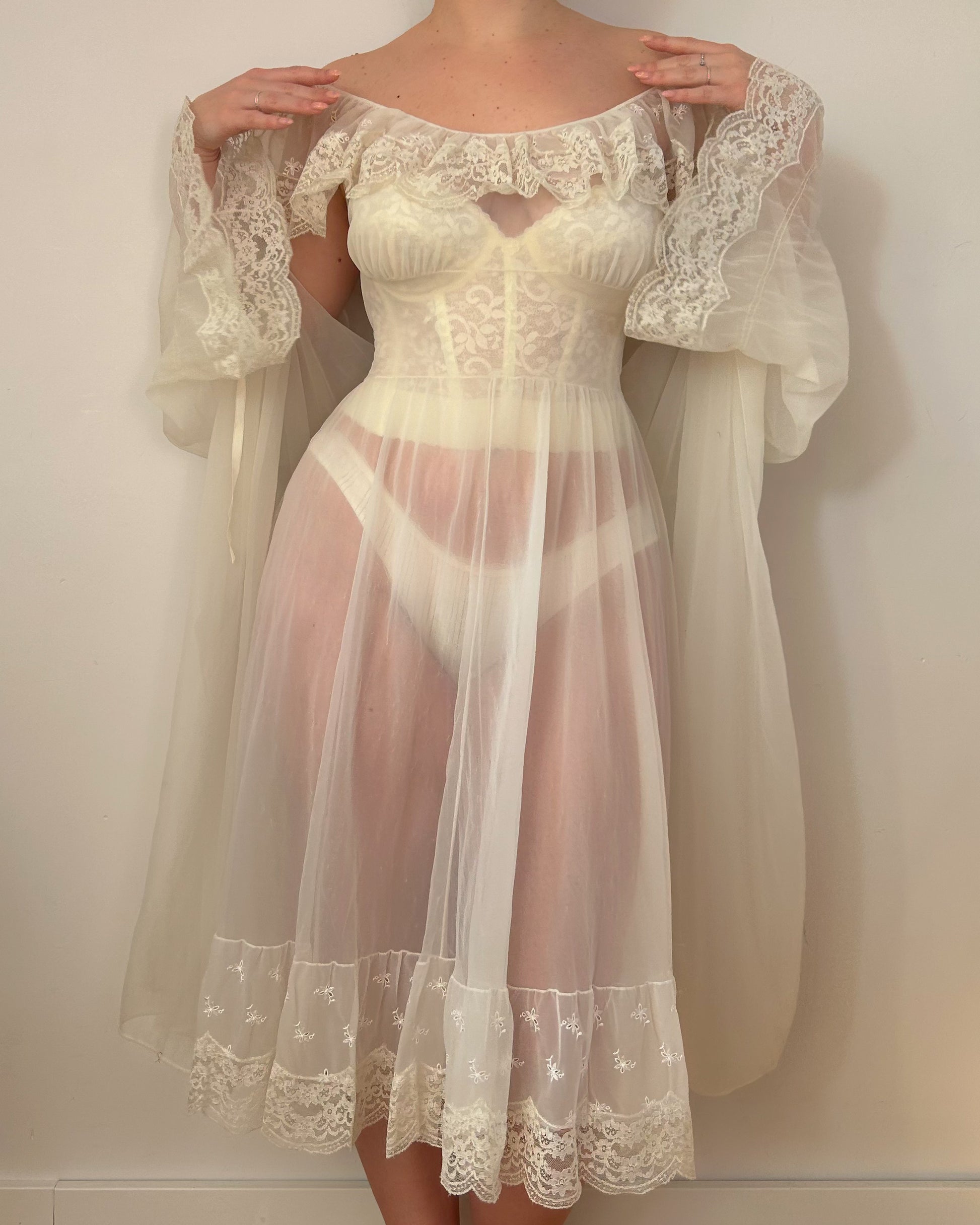 Thank goodness for this beautiful robe and dress set, feel good and graceful.