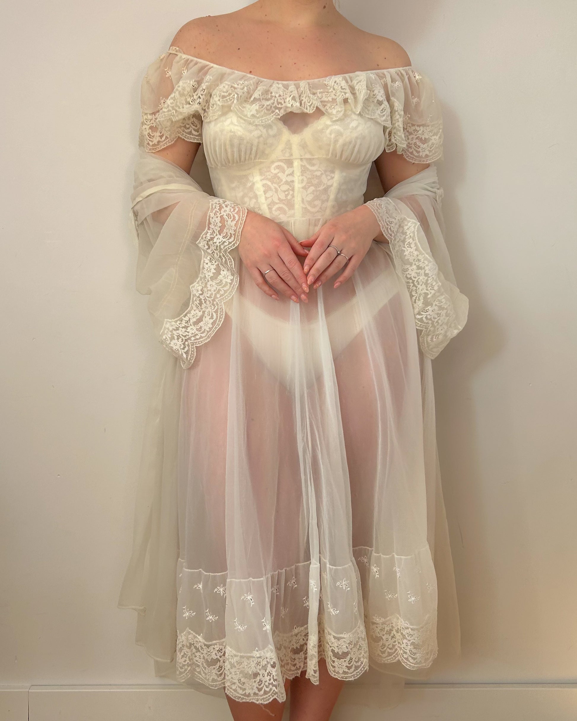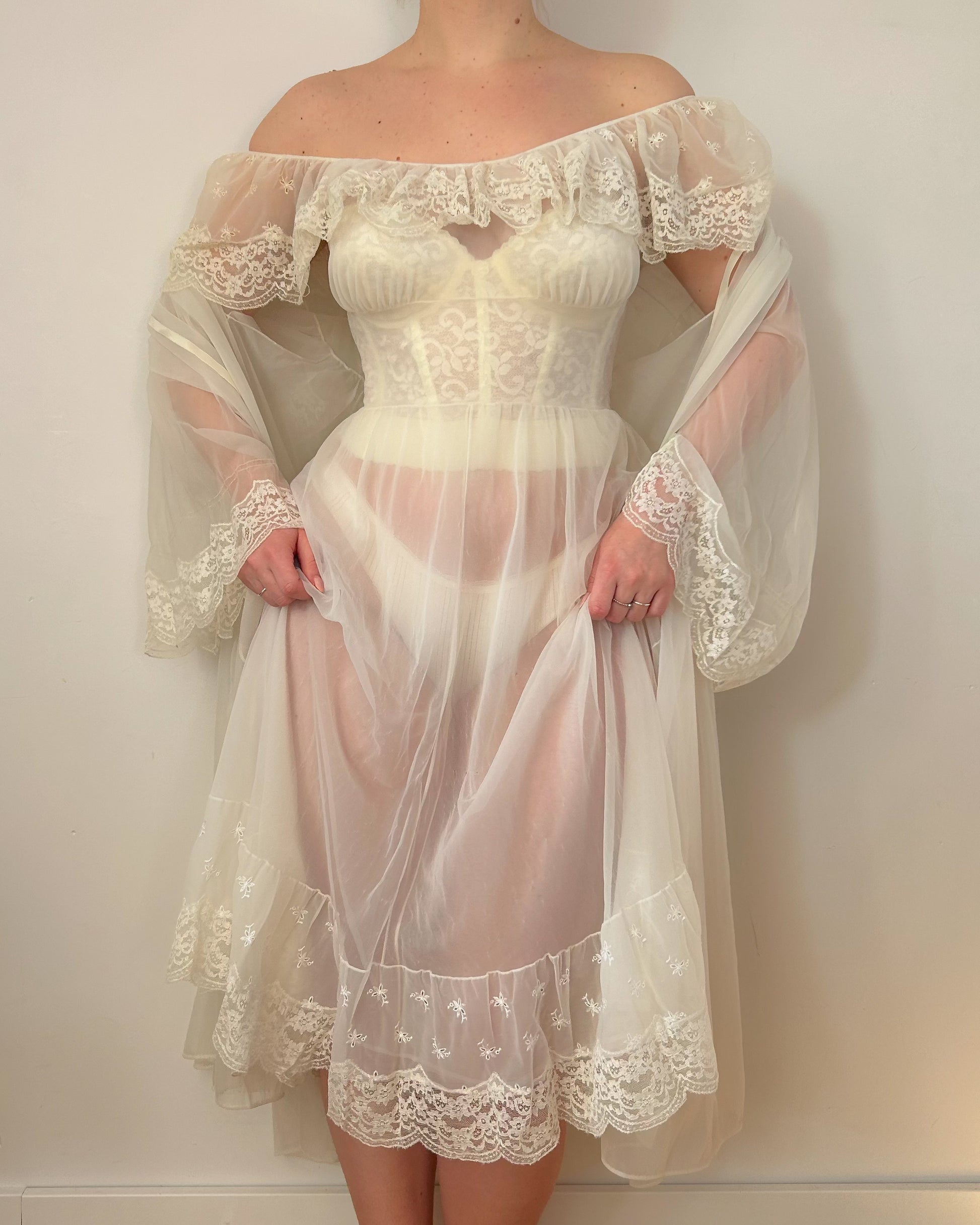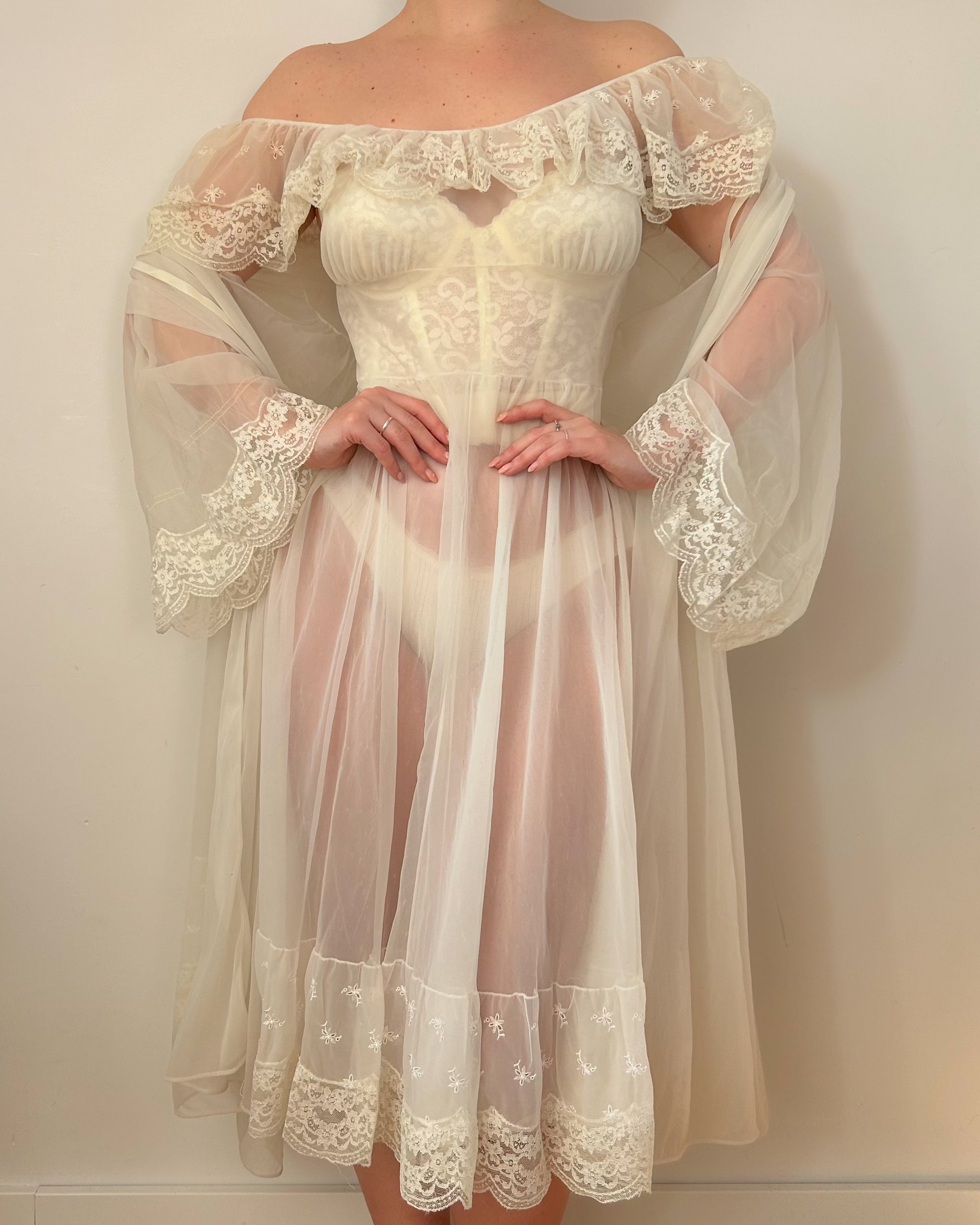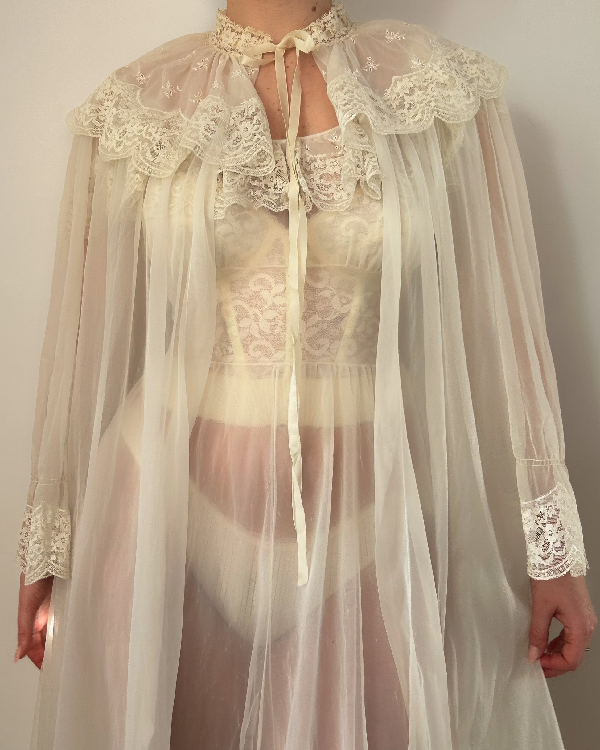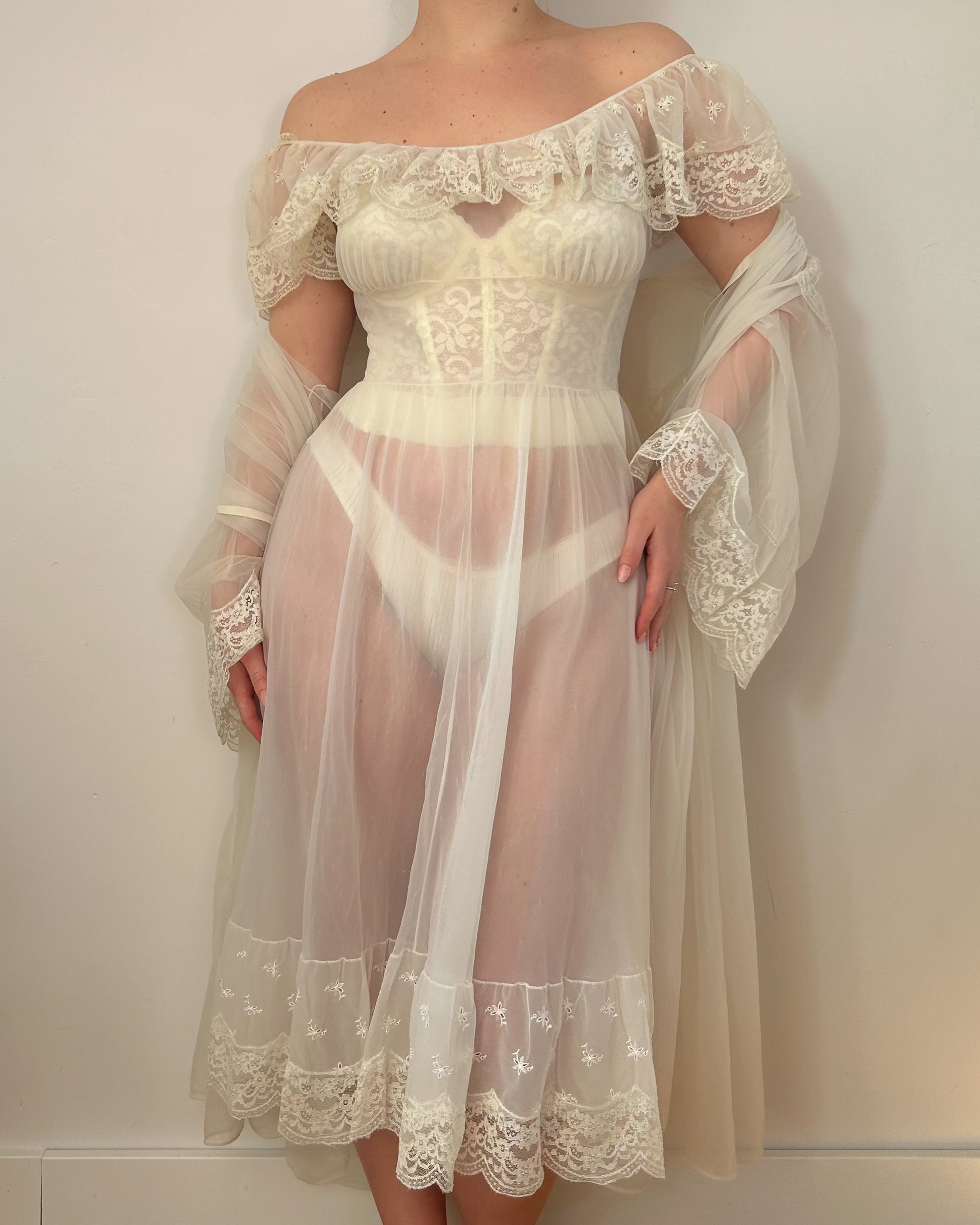 Thank goodness for this beautiful robe and dress set, feel good and graceful.