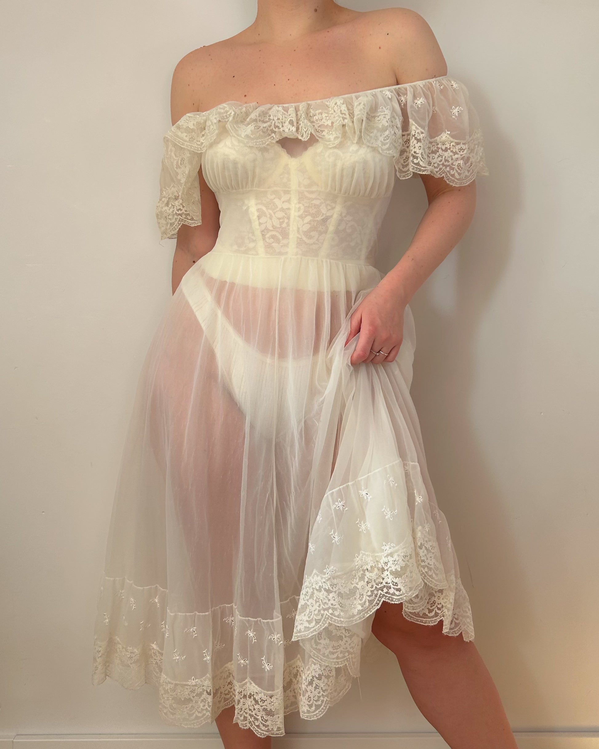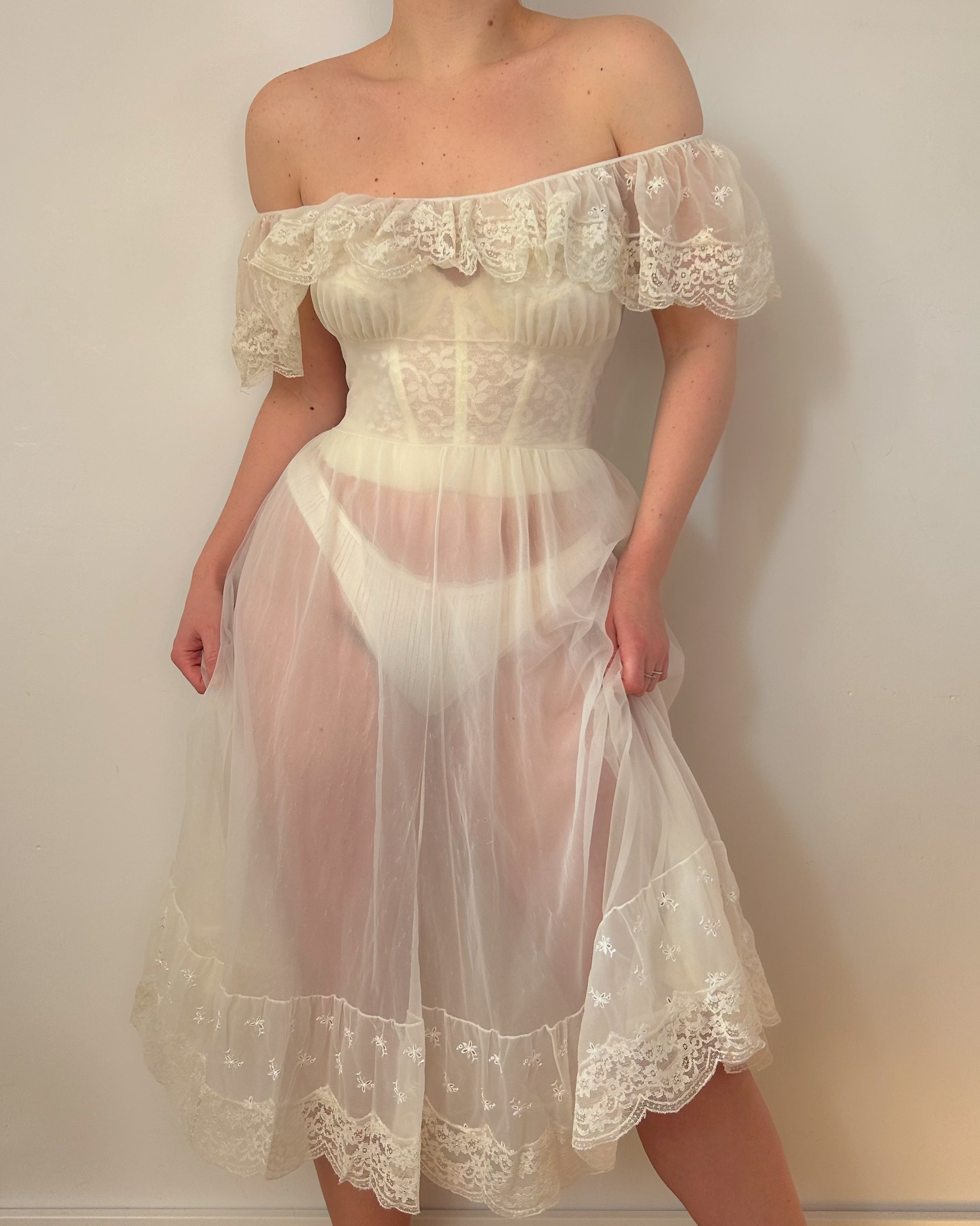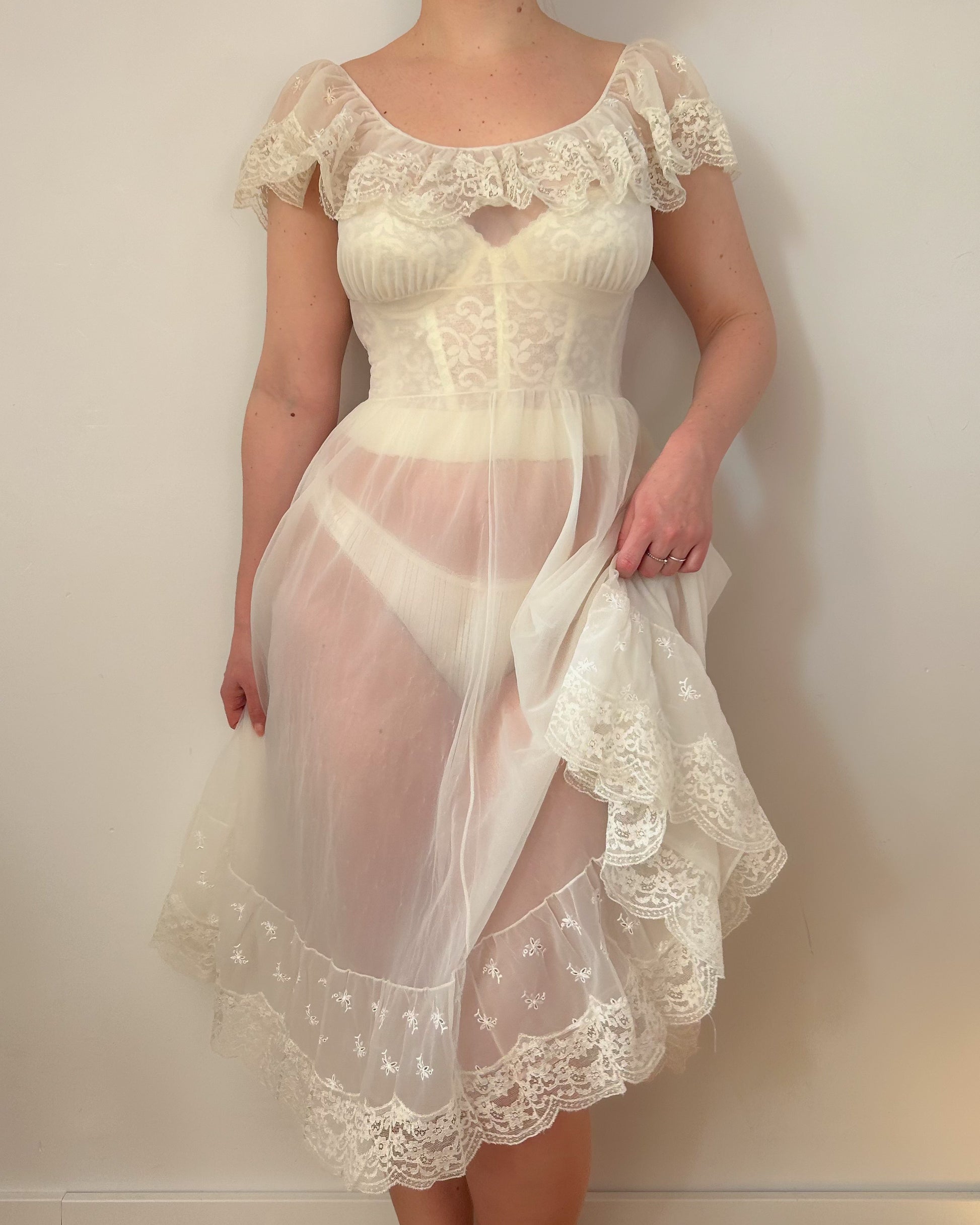 Condition: Dress has wear due to age but overall very good condition. Can be fragile do to age.
